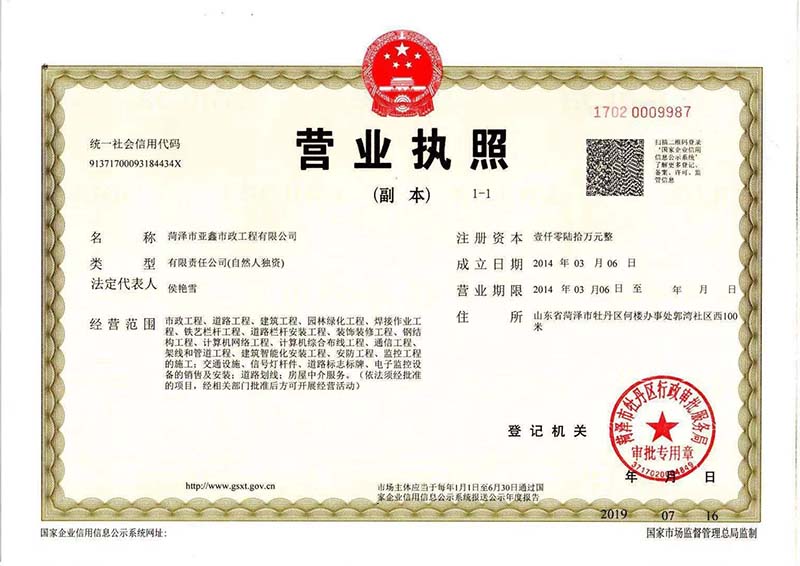 菏泽市亚鑫市政工程有限公司位于山东菏泽牡丹区何楼工业园,交通十分便捷。 本公司是一家专业从事生产安装阳台护栏、围墙栅栏、百叶窗、防盗窗、空调护栏、楼梯扶手、草坪护栏、道路栏杆等公关设施的企业。公司配备有静电喷涂流水线等各种机械设备,同时拥有一支具有高技术水平高素质的员工队