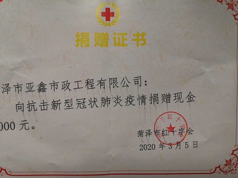 面对全国新型冠状病毒感染的肺炎疫情的严峻形势,菏泽市亚鑫市政工程有限公司积极响应政府号召和要求,将防控疫情放在首位,在扎实做好企业自身防控疫情的工作基础上,分别向菏泽市红十字会和何楼办事处捐赠资金及抗疫物资。